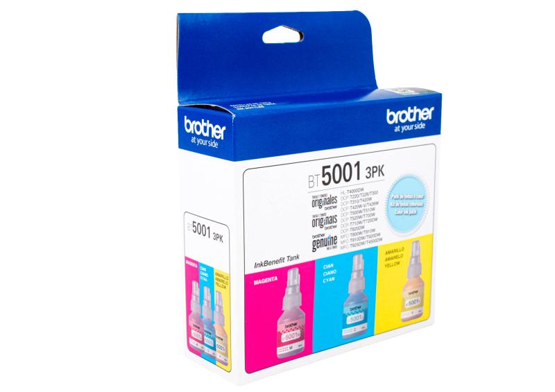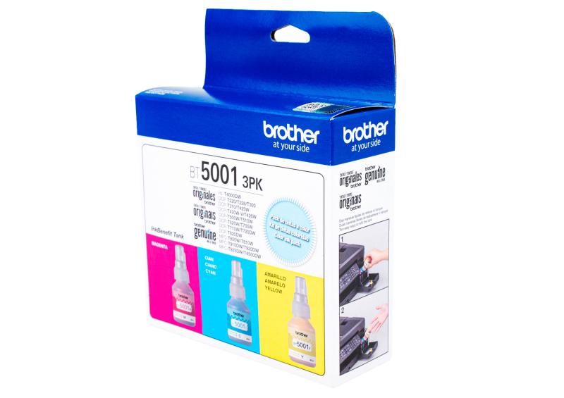 El pack de tintas Brother 3PK Tank Pack incluye los colores amarillo, cian y magenta, diseñado para ofrecer impresiones a color vibrantes, equilibradas y con excelente definición en cada documento o imagen.