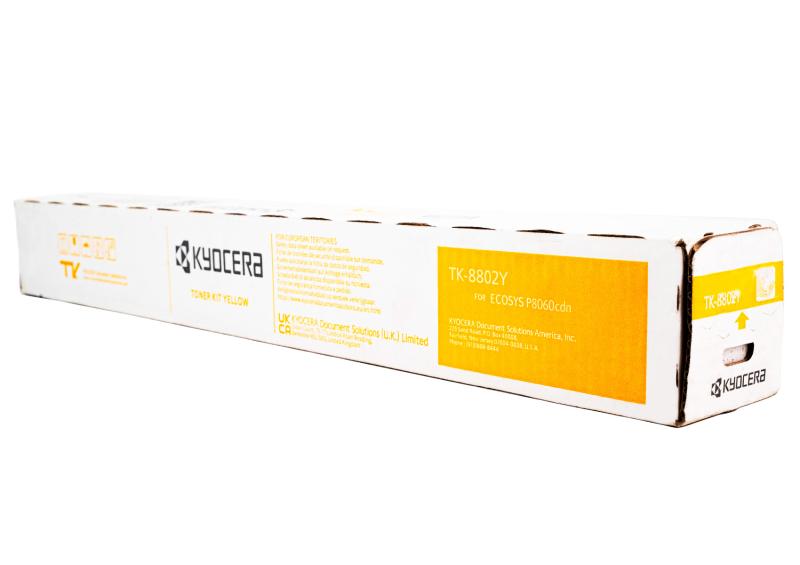 El Kyocera TK-8802Y ofrece tonos brillantes y uniformes, ideales para gráficos, presentaciones y documentos corporativos que requieren una excelente calidad visual.