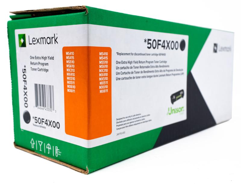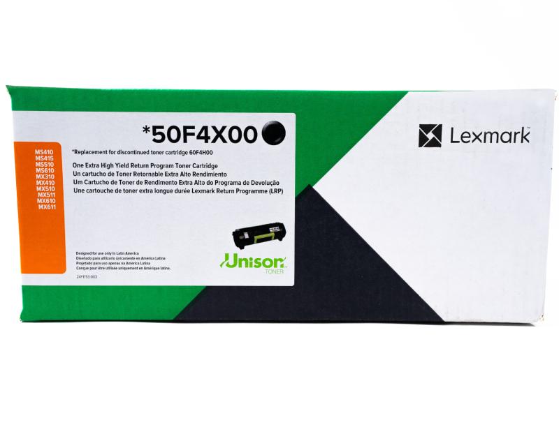 El Toner Lexmark 50F4X00 ofrece un negro uniforme y profesional, ideal para reportes, documentos administrativos y producción diaria constante.