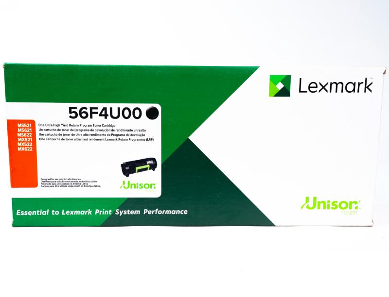El Toner Lexmark 56F4U00 ofrece un negro intenso y uniforme, ideal para documentos empresariales que deben mantener una presentación clara y profesional.